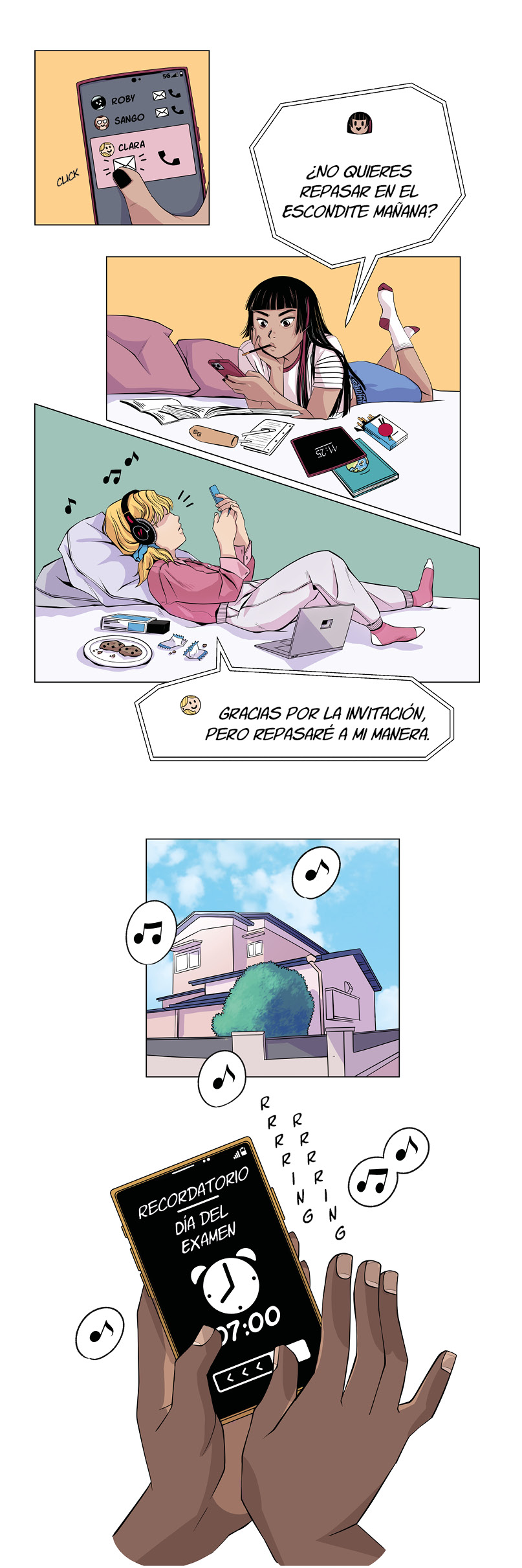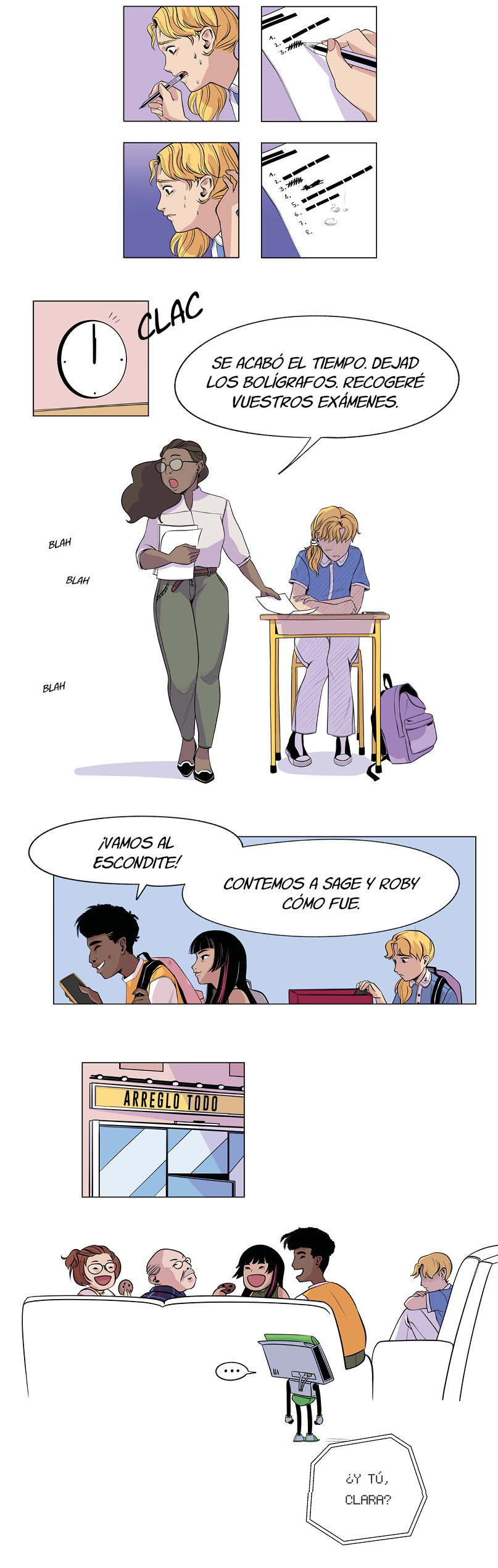 Los móviles no están permitidos el día del examen... Clara se derrumba.
