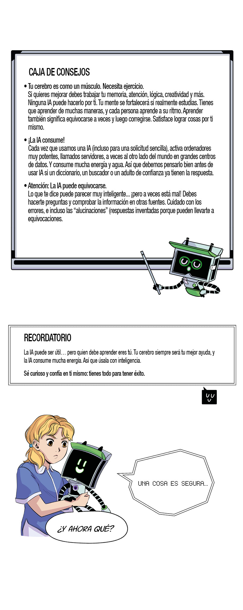 VERDADERO. La IA le daba las respuestas correctas, lo que le daba la ilusión de dominar, sin esfuerzo de comprensión ni memorización. Al copiar la IA sin pensar, no se desarrolla ni la memoria ni el pensamiento crítico. La IA es solo una herramienta, una máquina: puede ayudarte, pero depende de ti reflexionar, pensar por ti mismo, hacerte preguntas. ¡Así aprende tu cerebro! Igual que los deportistas entrenan sus músculos, el cerebro debe entrenarse a diario para ser eficaz. La IA puede ayudar a comprender algunos puntos de una lección, ayudarnos a estructurar una respuesta, hacerte preguntas para verificar que has aprendido. Solo el aprendizaje activo permite retener a largo plazo.